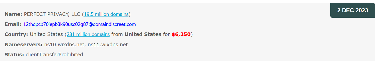 كما وضع الحساب رابط لموقع إلكتروني يحمل نفس الاسم، وعند فحص نطاق الالكتروني، أظهرت أداة فحص النطاقات الإلكترونية أن النطاق كان مسجل عام 2023 بالولايات المتحدة!