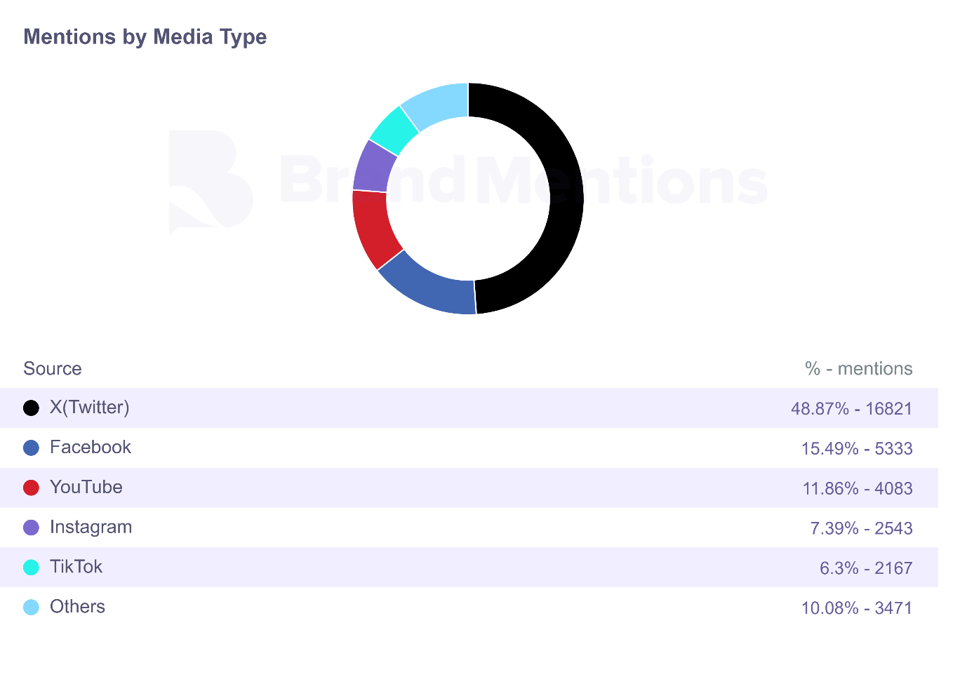 ويُعد هذا الحجم من التفاعل مرتفعًا مقارنة بعدد المنشورات والفترة الزمنية القصيرة، ما يشير إلى نمط تضخيم غير اعتيادي. وقد استحوذت منصة «إكس» على نحو نصف هذا المحتوى، تلتها «فيسبوك»، ثم «إنستغرام» و«تيك توك».