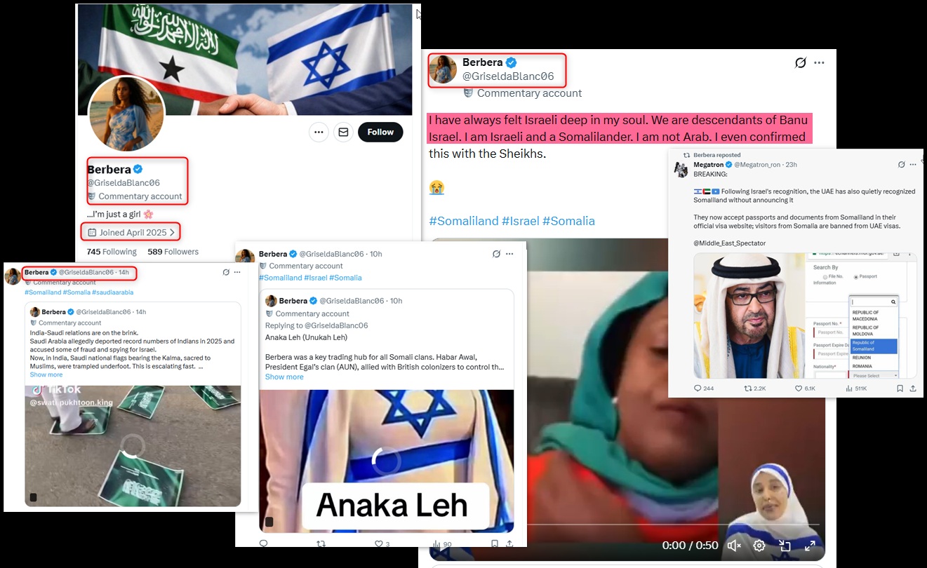 وتُظهر هذه الشبكة تبنّياً واضحاً لسرديات سياسية داعمة لإسرائيل، ومتقاطعة مع مواقف إماراتية في القرن الأفريقي، إضافة إلى دعم مشاريع انفصالية أخرى في الإقليم، ما يقدّم نموذجاً لكيفية توظيف الحملات الرقمية العابرة للحدود لإعادة تشكيل النقاش العام حول قضايا سيادية حسّاسة.