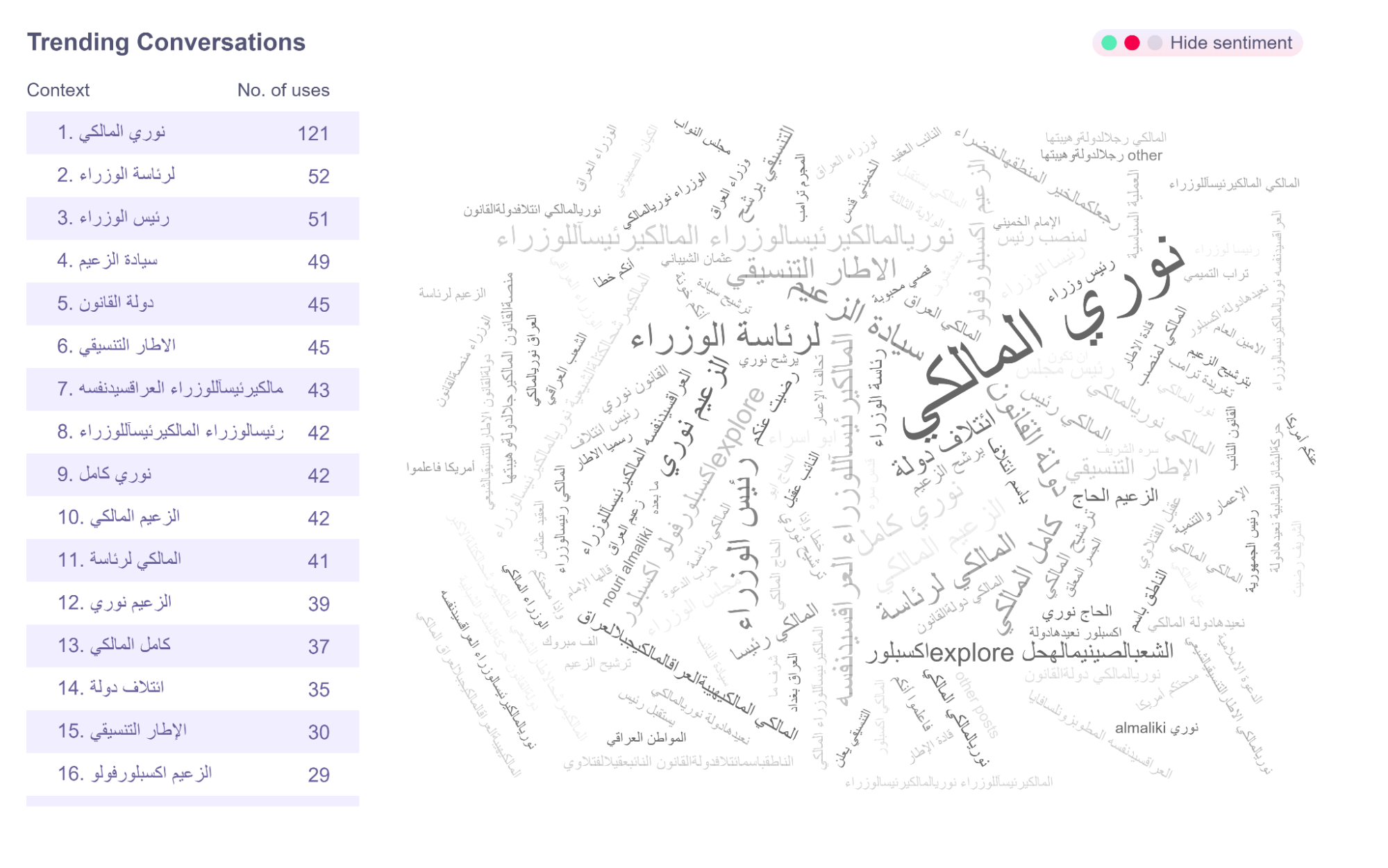 وبذلك، لم يتشكل التأثير عبر نقاش ممتد أو تفاعل تراكمي طويل الأمد، بل عبر دفعات مكثفة أعادت إدخال اسم "المالكي" إلى دائرة التداول العام في لحظات سياسية حساسة.