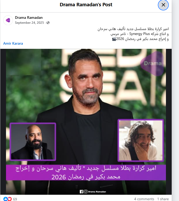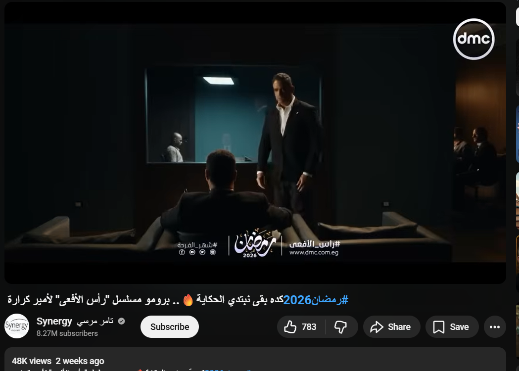 سبق بث هذا المقطع الترويجي إعلان نٌشر في أيلول/ سبتمبر 2025، عبر منصة "فيسبوك"، كُشف فيه عن بطل المسلسل والشركة المنتجة له، وهي شركة Synergy Production، المرتبطة برجل الأعمال والمنتج المصري تامر مرسي، رئيس مجلس إدارة مجموعة إعلام المصريين (EMG)، وتشير معلومات متداولة إلى ارتباط المجموعة بجهات سيادية في مصر.