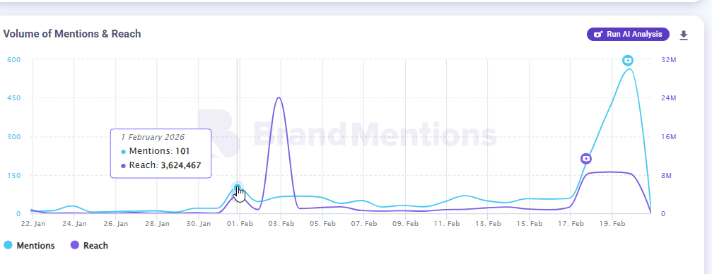يدعم هذا الترجيح المنحنى البياني الذي يقارن بين عدد المنشورات ومعدلات الوصول خلال الشهر الماضي؛ إذ يلاحظ أن ارتفاع الوصول لا يتطابق زمنياً مع فترات ذروة النشر، ما قد يدل على تضخيم محدود من المنشورات في أوقات لا تشهد زيادة في عددها.