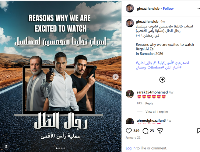 في 1 شباط/ فبراير 2026، بثت منصة WATCH IT المقطع الترويجي الأول لمسلسل "رأس الأفعى" الذي يعيد سرد واقعة مطاردة والقبض على "محمود عزت" القيادي في جماعة الإخوان المسلمين في مصر، وعضو مكتب الإرشاد، الذي تولى منصب القائم بأعمال المرشد العام عقب القبض على المرشد العام محمد بديع. وقد ارتبط اسمه بإدارة النشاط التنظيمي للجماعة داخل مصر وخارجها، وظلّ متواريًا لسنوات إلى أن أُلقي القبض عليه في القاهرة الجديدة في آب/ أغسطس 2020 بعد عملية أمنية استمرت سنوات، وهي الواقعة التي يستند إليها المسلسل، المعروف أيضاً باسم "رجال الظل: عملية رأس الأفعى"، في تجسيد أحداث المطاردة والاعتقال.