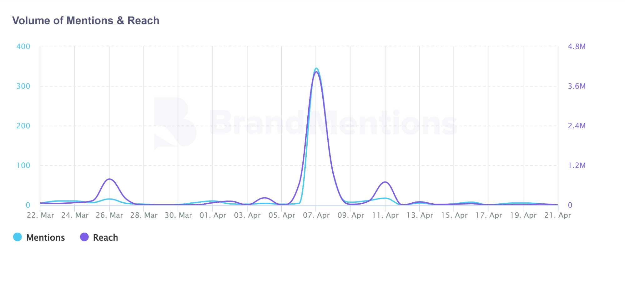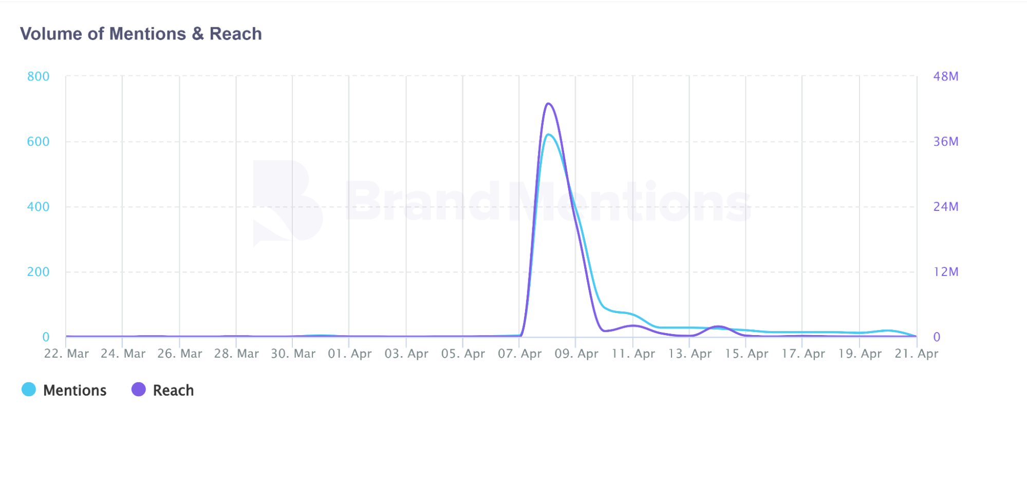 كما أن 345 mention ظهرت في يوم واحد فقط، هو 7 أبريل، بما يعادل 60.8% من كامل العينة، مع وصول النشاط إلى 112 mention في ساعة واحدة. هذا التركّز الزمني لا يكفي وحده للحكم، لكنه يلفت النظر حين يقترن بما يليه.