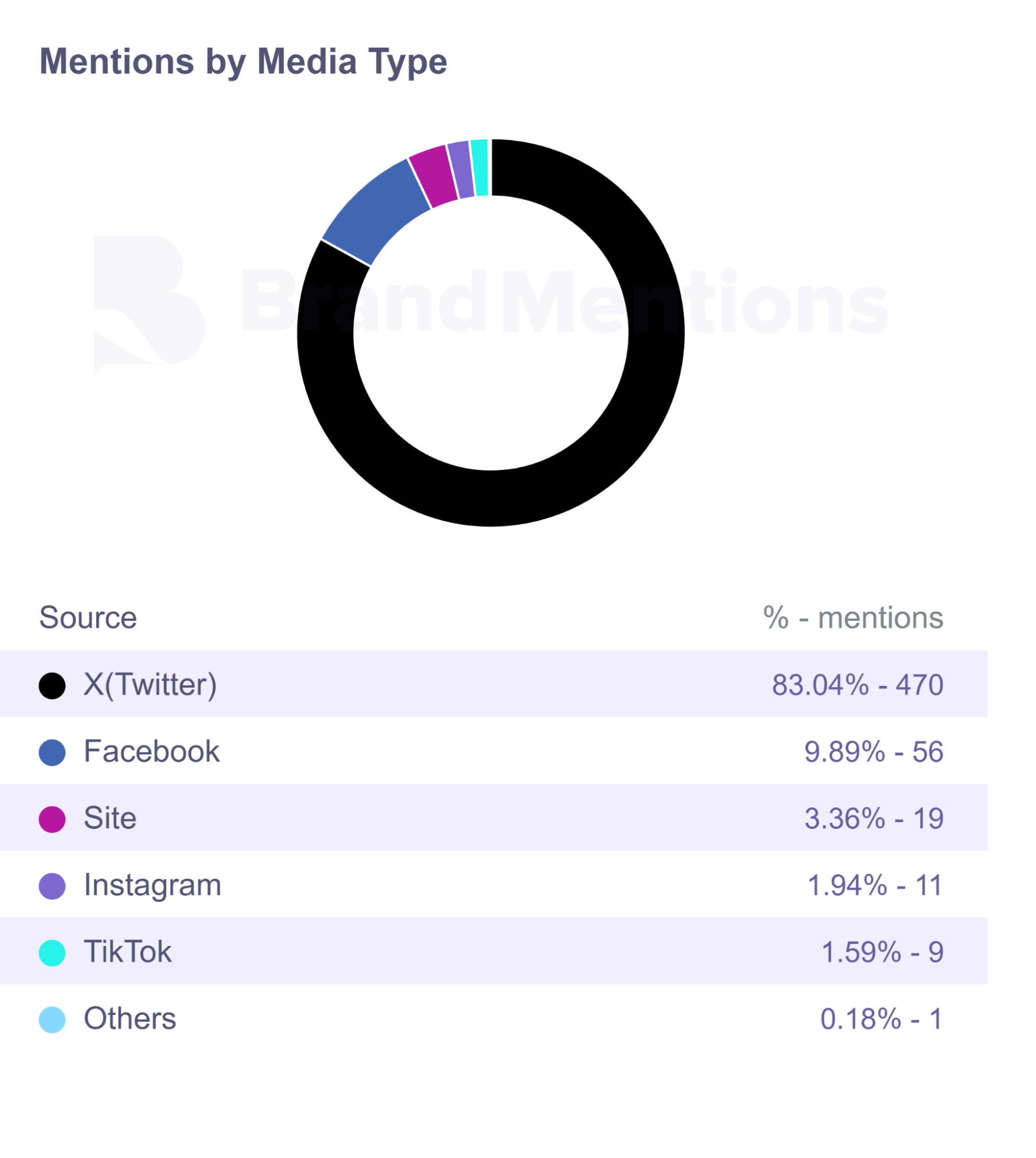 ولأن الفارق بين الوسمين قد بدأ من طبيعتها الرقمية، فإن البيانات تجعل هذا الفارق أكثر وضوحاً حين ننظر إلى بنية التفاعل نفسها. ففي وسم #مع_ايران_وشعبها، لم يكن المشهد مجرد تعبير واسع ومتناثر عن التعاطف أو الاصطفاف السياسي، بل بدا أقرب إلى تعبئة وسيمة منضبطة نسبياً. فمن أصل 567 mention في العينة، جاءت 469 على (إكس) وحده، أي أن المنصة نفسها كانت المسرح الرئيسي للحركة، لا مجرد جزء منها.