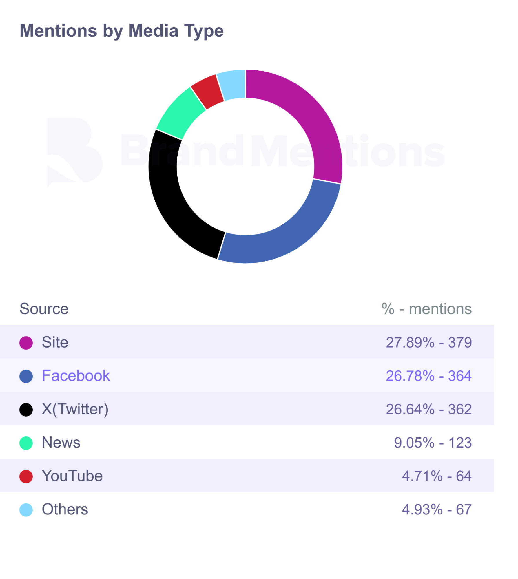 الصورة تختلف بوضوح في وسم #الظلام_الأبدي. فهنا نحن أمام عينة أكبر حجماً، بلغت 1339 mention، لكن توزيعها لا يشبه وسم دعم إيران؛ إذ جاءت 370 من مواقع، و 364 من فيسبوك، و359 من إكس، و118 من الأخبار، ما يعني أن الوسم لم يتشكل داخل إكس وحده، بل نشأ منذ البداية داخل دورة خبرية ومنصاتية أوسع.