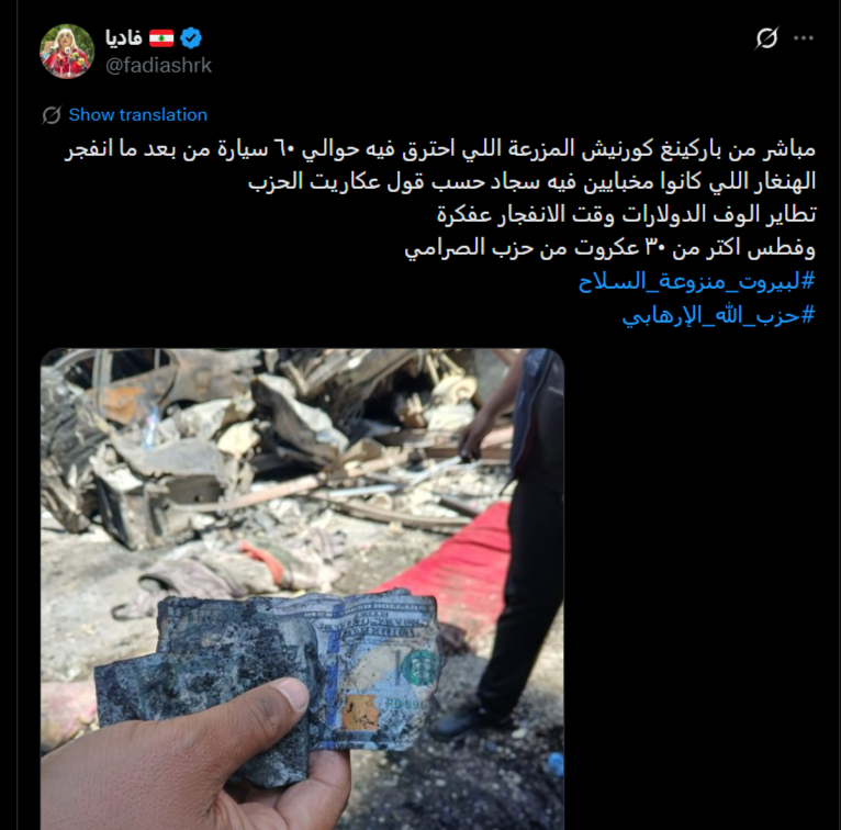 لكن اتساع الوعاء الخبري لا يعني أن الوسم بقي محايداً. ما تكشفه البيانات هو أن الحدث نفسه صار منصة لإعادة توزيع اللوم. فمع اتساع التداول، لم يعد الوسم مجرد عنوان لعملية عسكرية أو غارات واسعة، بل صار مكاناً تتنافس داخله تفسيرات مختلفة لما جرى: بعض المنشورات أبقت التركيز على القصف والضحايا والعدوان على لبنان، فيما اتجهت منشورات أخرى إلى ربط ما حدث مباشرة بحزب الله وسلاحه ودوره، لا بوصفه جزءاً من السياق فقط، بل بوصفه مسؤولاً عما جرى أو سبباً له.