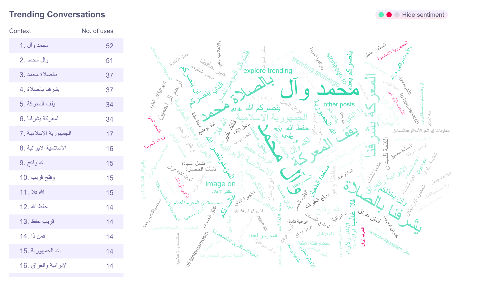 ولا يعني هذا أن الوسم كله كان مصطنعاً أو أن جميع المشاركين فيه جزء من نشاط موجّه. والأدق إن مساحة التفاعل هنا جمعت بين تعاطف سياسي حقيقي وبين طبقة تعبئة أكثر انضباطاً من أن تبدو عفوية بالكامل. وهذا ما يجعل وسم #مع_ايران_وشعبها أقرب، في هذه العينة على الأقل، إلى نموذج تتداخل فيه السردية الأيديولوجية مع مؤشرات سلوك غير أصيل أو شبه منسق، من دون أن يصبح ذلك حكماً نهائياً على كل من شارك فيه أو على الوسم كله بوصفه شبكة واحدة مغلقة.