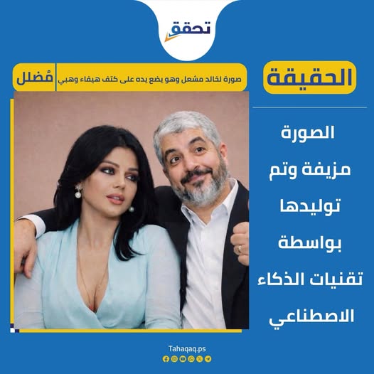 في فلسطين، حيث تداولت صورة مزعومة لرئيس المكتب السياسي لحركة المقاومة الإسلامية الفلسطينية (حماس) في الخارج، خالد مشعل، وهو يضع يده على كتف الفنانة هيفاء وهبي.