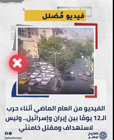 تحقّقت منصة "صحيح مصر" من المقطع المتداول وخلُصت إلى أنه مضلّل إذ يرجع مصدره الأصلي إلى تموز/ يوليو 2025، في أثناء حرب الـ12 يوماً بين إيران وإسرائيل، ويُظهر لحظة سقوط صواريخ إسرائيلية على ميدان القدس بالعاصمة طهران، ولا علاقة له بواقعة اغتيال خامنئي.