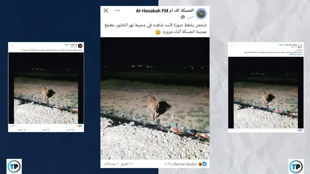 ✅ الادعاء أن الصورة المتداولة توثق ظهور أسد في محيط مدينة الحسكة، ليس صحيحاً.