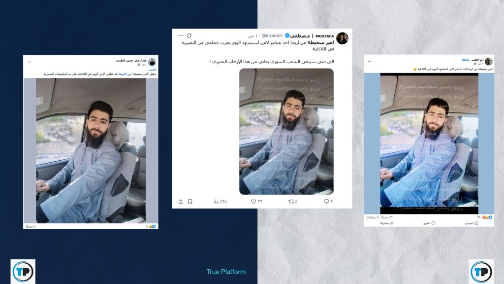 ✅ الادعاء بأن الشاب أمير سخيطة هو عنصر من الأمن الداخلي قُتل خلال احتجاجات مدينة اللاذقية #غير_صحيح.