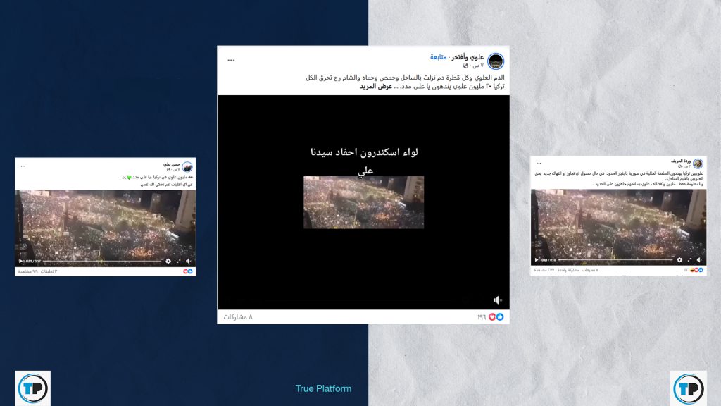 📍تداولت صفحات وحسابات على موقع فيسبوك، مؤخراً، مقطع فيديو لمظاهرة حاشدة يردد فيها المحتجون شعار "#يا_علي_مدد"، مع ادعاء أنه يعود لمظاهرة في تركيا خرج فيها #العلويون تضامناً مع علويي #سوريا.