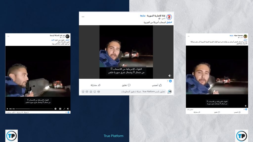 ✅الادعاء أن الفيديو المتداول يوثق انسحاباً للقوات الأمريكية من شمال وشرق سوريا، #غير_صحيح.