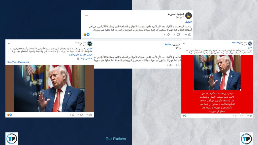 ✅ التصريحات المنسوبة للرئيس الأمريكي حول التوقف عن الاعتماد على #الأكراد واتهامهم بـ "السرقة" غير صحيحة.
