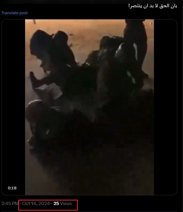 كما نشر حسابي Sulaiman Ahmed و Save Palestine على منصة "X" مقطع الفيديو بتاريخ 2023.10.20 مرفقًا بالنص التالي: "عاجل: انفجار عبوة ناسفة يؤدي إلى إصابة عدد من جنود الاحتلال الإسرائيلي".