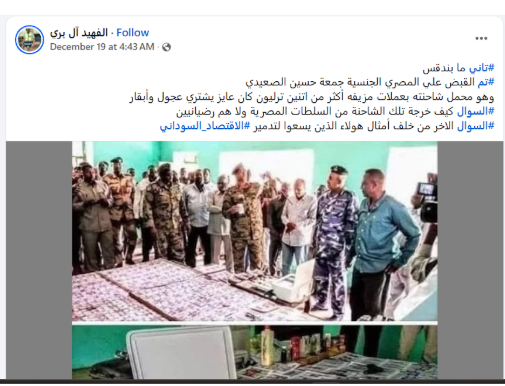 ما حقيقة الصورة التي يُزعم أنها توثق ضبط مصري بحوزته عملة سودانية مزيفة؟