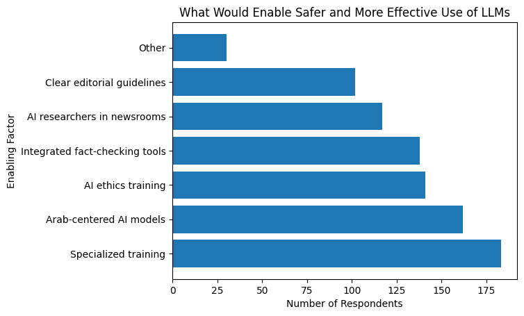 Levels of comfort in relying on LLMs are moderate rather than high. Most journalists describe themselves as only somewhat comfortable, reflecting a balance between practical reliance and professional caution. Importantly, respondents overwhelmingly emphasize institutional and structural solutions over individual adaptation. The strongest demands include specialized training, development of Arab-centered AI models, AI ethics education, integrated tools for fact-checkers, newsroom-level AI expertise, and clear editorial guidelines.