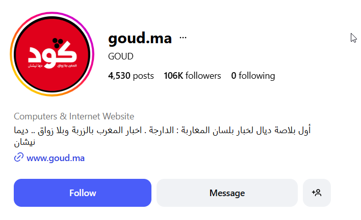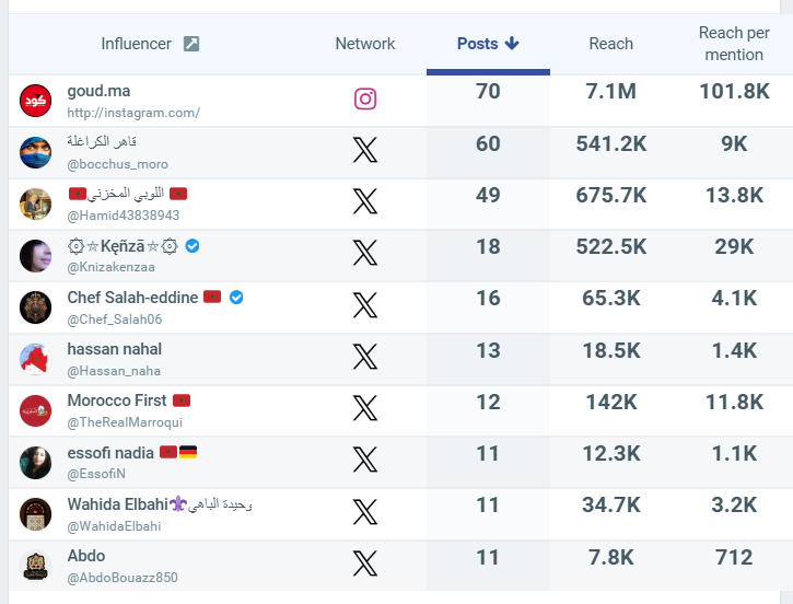 جاء في صدارة القائمة حساب goud.ma على منصة إنستغرام، إذ نشر 70 منشوراً تضمّن أحد الوسوم التي ركّز عليها البحث. ويُعدّ الحساب تابعاً لجريدة "گوديريش" الإلكترونية، التي قدّمت تغطية متنوعة للاحتجاجات في المغرب.