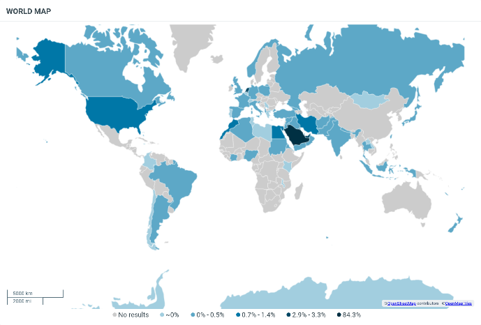 فيما تركز التفاعل مع الوسم جغرافياً بالسعودية، بما أنها المكان الذي حدثت به المباراة؛ ولأن جمهور الفريقين غالبيته سعودي.