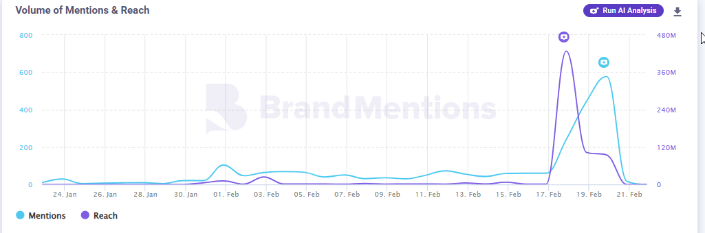 يدعم هذا الترجيح المنحنى البياني الذي يقارن بين عدد المنشورات ومعدلات الوصول خلال الشهر الماضي؛ إذ يلاحظ أن ارتفاع الوصول لا يتطابق زمنياً مع فترات ذروة النشر، ما قد يدل على تضخيم محدود من المنشورات في أوقات لا تشهد زيادة في عددها.