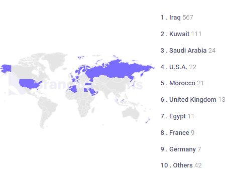 على مستوى المواقع الجغرافية للحسابات المشاركة، تصدر العراق والكويت قائمة الدول الأكثر نشاطاً في النشر، تلتهما السعودية في المرتبة الثالثة، ثم الولايات المتحدة، فالمغرب، والمملكة المتحدة، ومصر.