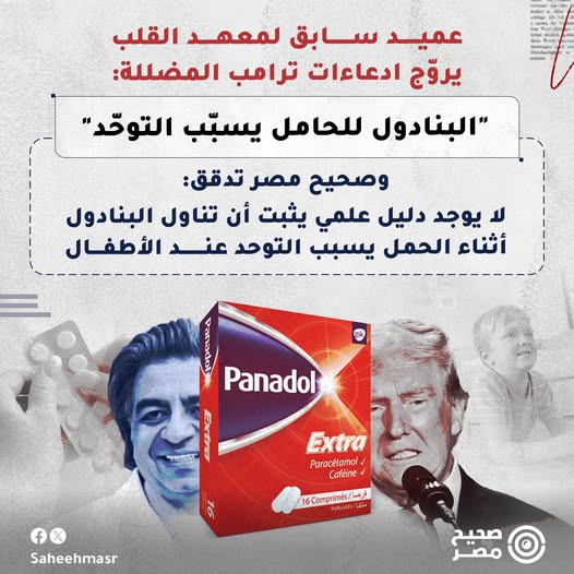منصة صحيح مصر أوضحت أن الادعاء مضلل. فبحسب مراجعات وكالة الأدوية الأوروبية، منظمة الصحة العالمية، ووكالة تنظيم الأدوية في بريطانيا، "لا يوجد دليل علمي يثبت أن الباراسيتامول أثناء الحمل يسبب التوحّد". على العكس، يوصي الأطباء باستخدامه لعلاج الألم والحمى باعتباره الخيار الأكثر أماناً للحوامل.