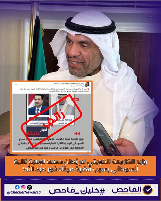 تداولت صفحات على فيسبوك خبراً نصه: "وزير خارجية الكويت: ندعم دولة الرئيس محمد شياع السوداني للولاية الثانية لتعاونه معنا بحل أغلب المشاكل الكويتية العراقية وأبرزها ميناء خور عبد الله الكويتي".