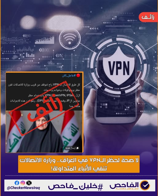 تداولت صفحات على مواقع التواصل خبراً زعم أن وزارة الاتصالات العراقية قررت حظر بروتوكولات وخوادم وخدمات الـ VPN باستخدام إجراءات تقنية متقدمة.