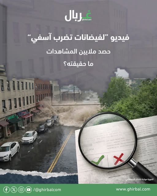 ولكن منصة «غربال» المغربية، تحققت من الادعاء وخلصت إلى أنه زائف، مؤكدة أن المقطع لا علاقة له بفيضان آسفي. وأوضحت المنصة أن من بين مؤشرات الزيف المباني والمعالم الظاهرة في الفيديو، التي لا تتطابق مع طراز المباني في المدينة العتيقة بآسفي. كما تبيّن أن المقطع نُشر على منصة يوتيوب قبل وقوع الحادثة، وجاء في وصفه أنه «مولّد بالذكاء الاصطناعي وغير حقيقي، ويحاكي مشاهد متوقعة وتأثيراتها المحتملة».