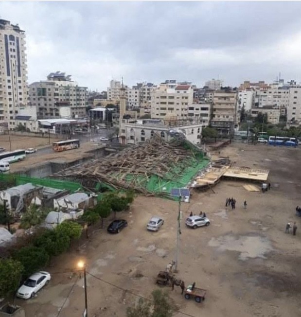نشرت صفحات وحسابات على مواقع التواصل الاجتماعي صورة مُرفقة مع عنوانٍ جاء فيه "سقوط منصة مهرجان حماس وأنباء عن إصابات"