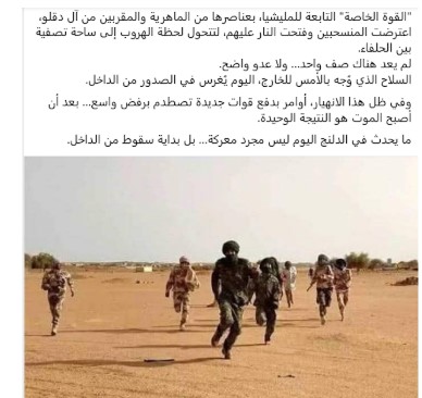 تداولت العديد من الحسابات على منصتي «فيسبوك» و«إكس» صورة أفراد يركضون وهم يرتدون أزياء عسكرية، على أنها توثق هروب مجموعة من «المرتزقة الجنوبيين» التابعين لـ«الدعم السريع» من أرض المعركة في مدينة الدلنج بجنوب كردفان، جراء هجوم قوات الجيش.