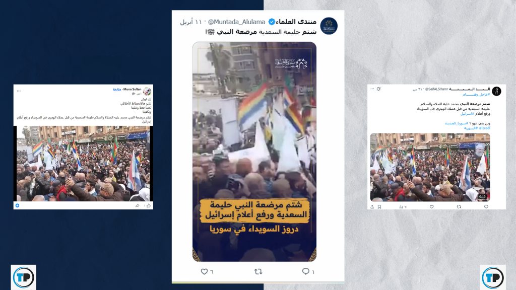 📍تداولت صفحات وحسابات على مواقع التواصل الاجتماعي، مؤخراً، مقطع فيديو مع ادعاء يزعم تضمنه إساءةً من أنصار الشيخ #حكمت_الهجري لـ "#حليمة_السعدية" مرضعة النبي محمد، وذلك خلال إلقاء قصيدة ضمن تجمع في مدينة السويداء يوم أمس السبت.