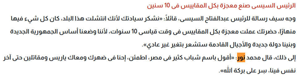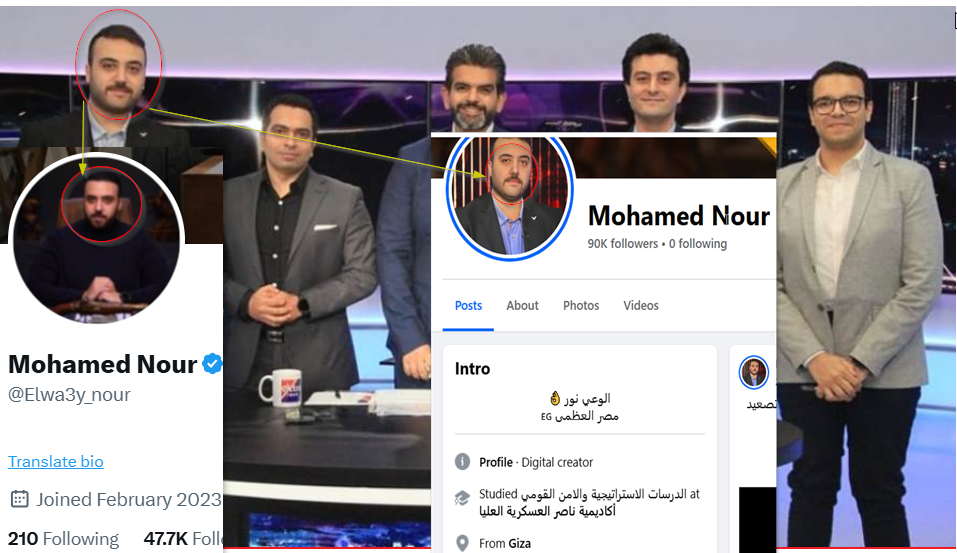 He has also declared in several newspaper articles that he actively supports the Egyptian regime and participates in propaganda efforts on its behalf. He is a member of a prominent, active social media group known for backing the Egyptian regime, which includes figures such as Louay El Khatib, Seif Mahmoud, and Ahmed Mubarak.