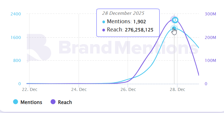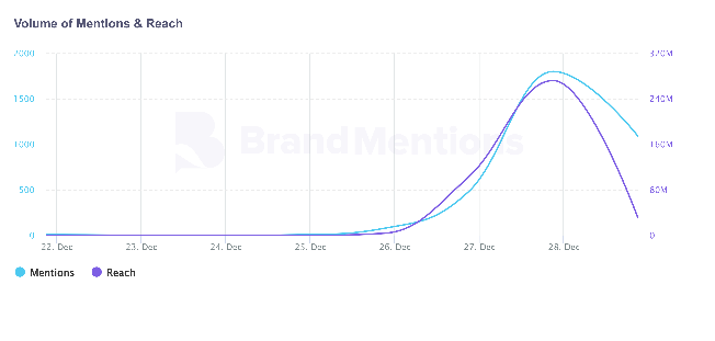 The interaction peaked on December 28, with a total of 1,900 posts and an estimated reach of about 276 million.