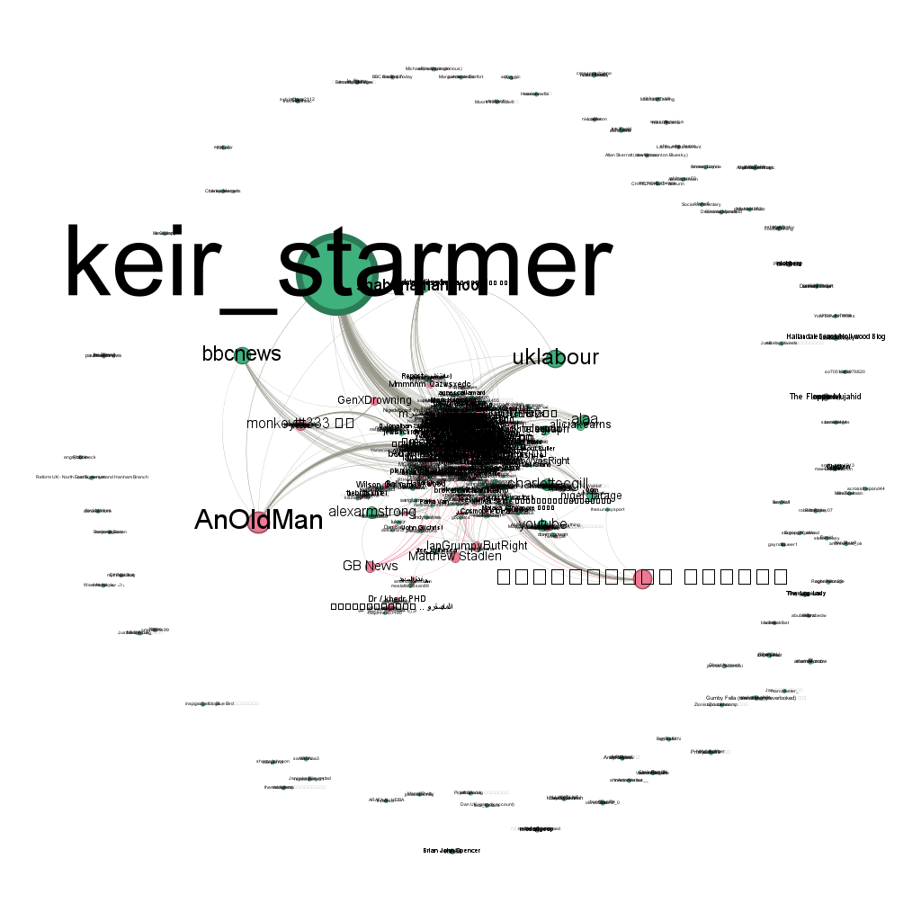 Network analysis using Gephi reveals that the most central nodes were: keir_starmer, bbcnnews, uklabour, AnOldMan, and GBNews. Notably, Alaa himself was absent from the network's center, confirming that the issue was not about him as much as it was a debate about British politics and identity. The conclusion is that the shift from a humanitarian discussion to an overt partisan conflict occurred in less than 24 hours, with an amplification mechanism that could be clearly tracked.