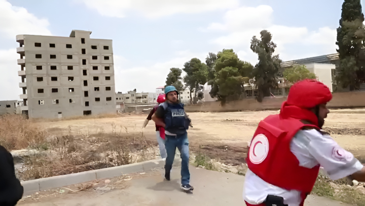 | الفيديو للمصور الصحفي حازم ناصر ويوثق اللحظات الأولى لإصابته برصاص الاحتلال في خاصرته خلال عمله الصحفي في جنين عقب اقتحامها بتاريخ 19/6/2023، ويظهر هرولته نحو مركبة الإسعاف بسبب صعوبة وصولها إليها، واشتداد إطلاق النار من حوله. |