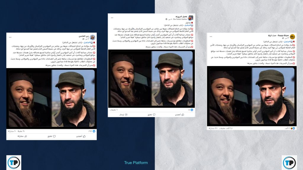 📍جرى مؤخراً، تداول #ادعاء يفيد باندلاع اشتباكات عنيفة في #إدلب بين عناصر من المهاجرين #التركستان و #الأوزبك من جهة، وقوات #الأمن_العام التابعة للحكومة السورية من جهة أخرى.