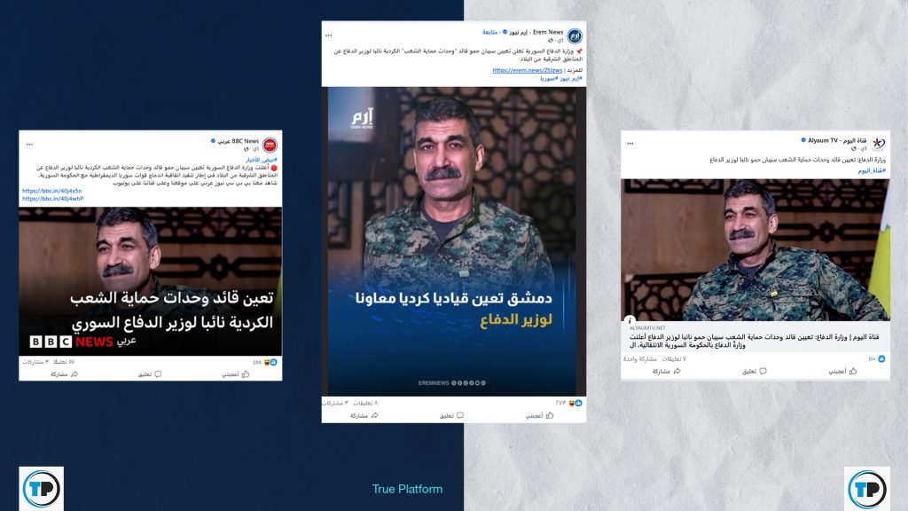 📍تداولت وسائل إعلام عربية وسورية مؤخراً خبراً مفاده أن #وزارة_الدفاع_السورية عيّنت #سيبان_حمو، قائد وحدات حماية الشعب، نائباً لوزير الدفاع لشؤون المنطقة الشرقية.